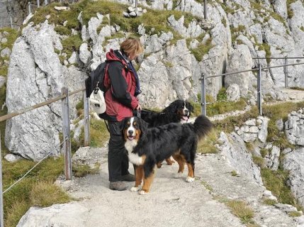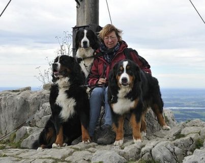 die Gipfelstürmer....Aslan,Yanosch,Finley und Frauchen Eva |