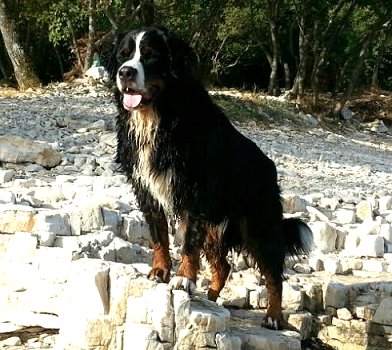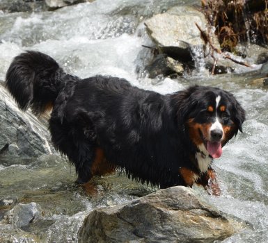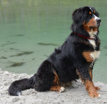 Berner am Strand und im Meer ist ein absoluter Eyecatcher.....