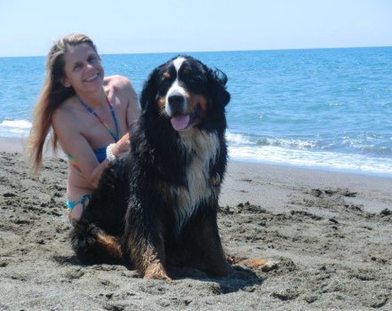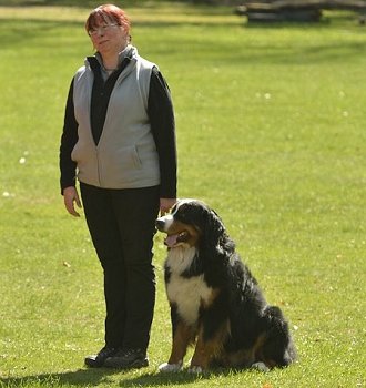 Finley ohne Wagen mit Frauchen Eva |