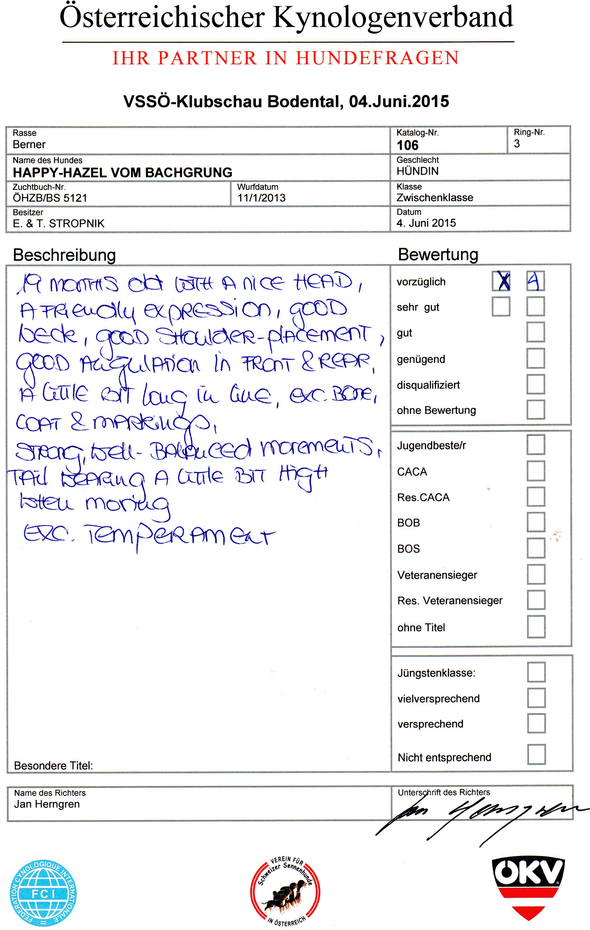 HD A/A, ED O/O, OCD frei |
