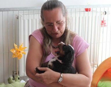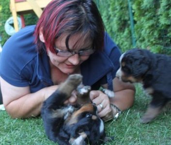 Rosa Shirt und rosa Halsband, Frauchen mit Giulia im Partnerlook |