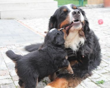 Eddy ist so gutmütig, sogar an seinem Fleckstangerl darf Galileo mitnaschen... |