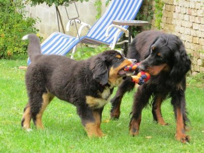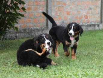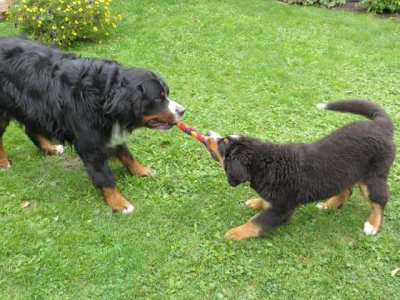 Gjara entwickelt sich prächtig und protzt vor Selbstbewusstsein..... Gjara mit einem spaßigen Spielkameraden... und auch mit Jesse wird gerangelt - was für ein Welpenleben ! |