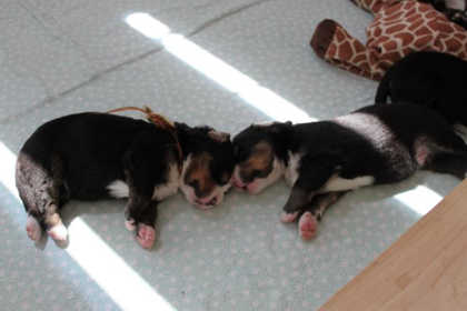 Frauchen gerade die Wurfkiste vergrößert, kann April