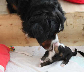 Wurfkiste gelegt und Babys geputzt!!April liebt ja ihren